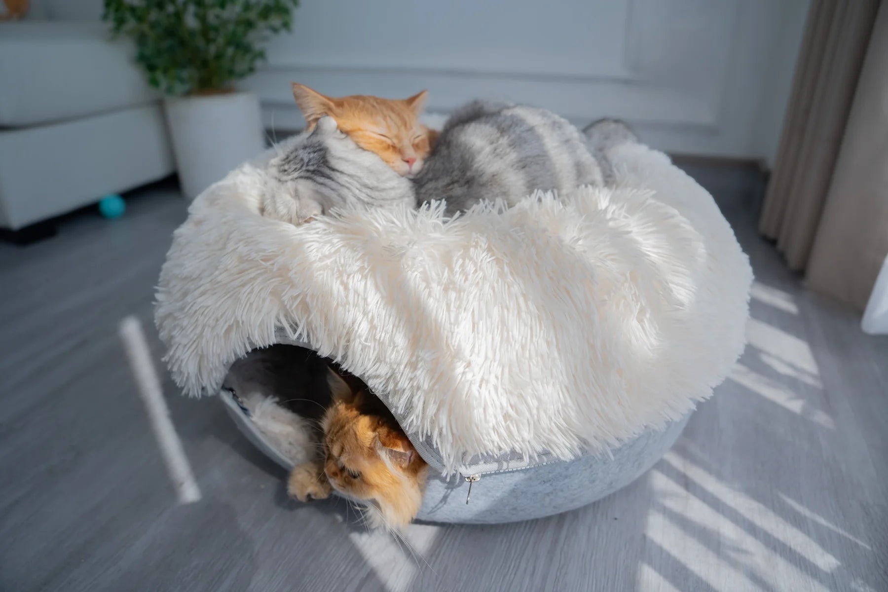 This fluffy cave is designed to keep them warm, safe, and happy.
